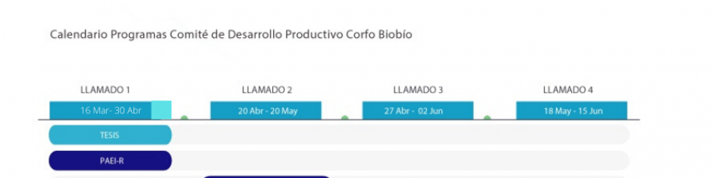 EXTENSIÓN DE PLAZO: El Comité de Desarrollo Productivo de la región del Biobío informa la EXTENSIÓN DE PLAZO de las siguientes convocatorias: PAEI-R y TESIS, en ambas convocatorias se recibirán a través del sistema electrónico de proyectos en el sitio web www.fomentobiobio.cl hasta el 30 de abril de 2020 a las 16:00 horas. Corfo